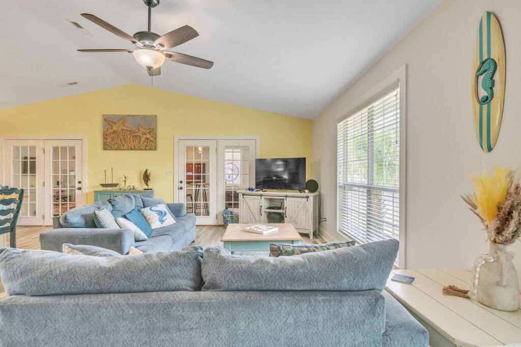 🏖️ Your PCB getaway! This 3BR/2BA home sleeps 10 with a pull-out couch, fully stocked kitchen & spacious living areas. Enjoy the private sand volleyball court 🏐 plus a fun game room for all ages. Just minutes to the beach & Pier Park, it’s the perfect spot for families & groups. Relax, play, and make memories—your beach vacation starts here! 🌴