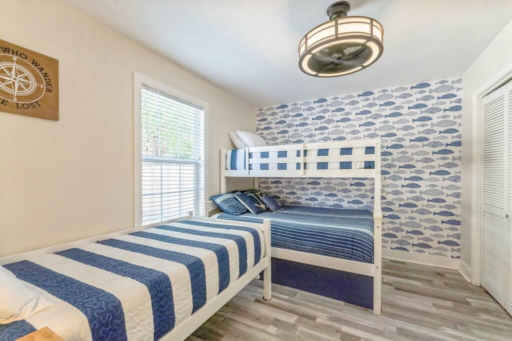 ⭑ Master Bedroom: ⭑ ✔️ A cozy retreat with a plush King bed 🛏️ and room-darkening shades ✔️ Closet space, ceiling fan, and extra linens for ultimate comfort Master bath with a dual-head shower 🚿 connected to this room ⭑ Second Bedroom: ⭑ ✔️ Features a comfortable Queen bed with a dresser and closet ✔️ Room-darkening shades and fresh, soft linens provided In-room washer and dryer 🧺 with access to the back deck area 🌿 ⭑ Third Bedroom: ⭑ ✔️ Perfect for kids or extra guests, equipped with a Twin bed and a Full/Twin bunk bed with cheerful décor ✔️ Includes room-darkening shades for restful nights ⭑ Living Room: ⭑ ✔️ Spacious and welcoming with a large TV 📺 for movie nights ✔️ Comfortable seating, ceiling fan, and bright décor to create a relaxing ambiance ⭑ Kitchen & Dining Area: ⭑ ✔️ Fully equipped for culinary needs with stainless steel appliances, a Keurig ☕, drip coffee maker, and baking essentials ✔️ Dining table and island seating for 10 🍽️ – ideal for family meals and gatherings ⭑ Bathrooms: ⭑ ✔️ Fresh and well-stocked with toiletries, body soap, shampoo, and conditioner ✔️ One bathroom features a bathtub 🛁 – perfect for unwinding after beach days ⭑ Game Room: ⭑ ✔️ Hours of fun await with arcade games, a foosball table, and a selection of board games 🎲 ✔️ Pub-style seating, a cozy couch (with pull-out bed), books, and a TV create the perfect space for family entertainment ⭑ Outdoor Space: ⭑ ✔️ Enjoy a private backyard with a BBQ grill 🍔, charcoal (not provided), and all the grilling utensils you need ✔️ Outdoor dining area and cozy furniture, plus a sand court for volleyball 🏐 ⭑ Additional Amenities: ⭑ ✔️ Beach essentials provided, including a wagon, chairs, and beach toys 🏖️ (beach towels not provided) ✔️ Pack 'n Play for young children, plus extra pillows and blankets ⭑ Safety & Security: ⭑ ✔️ Smoke alarm and fire extinguisher 🔥 for peace of mind ✔️ Private lighted entrance for your security and convenience; external security cameras in place ⭑ Entertainment & Connectivity: ⭑ ✔️ High-speed WiFi 🌐 ✔️ A selection of books, movies, and life-size games adds extra family fun ⭑ Heating & Cooling: ⭑ ✔️ Central heating and air conditioning for year-round comfort ✔️ Ceiling fans in most rooms and portable fans available Game room features a window air conditioner ❄️ ⭑ Parking & Facilities: ⭑ ✔️ Free parking on premises in the driveway 🚗 ✖️ Please note: Do NOT park on the front lawn ✔️ Single-level home with no stairs for easy accessibility ⭑ Services: ⭑ ✔️ Washer and dryer included in-unit, plus self-check-in for flexible arrival times Your stay at the Coastal Retreat promises cozy comfort, modern convenience, and endless fun. Book now and start your Panama City Beach adventure in style!